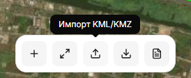 Если у вас уже есть контур участка в Google Earth или другом сервисе, его можно сохранить в формате KML или KMZ и загрузить сюда. Нажимаем кнопку «Импорт KML/KMZ» — иконка загрузки.