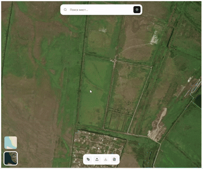 Участок можно нарисовать на карте или загрузить из файла KML. Сначала покажем рисование. Внизу по центру есть панель инструментов.