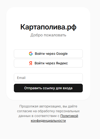 Откроется страница входа. Войти можно через Google, через Яндекс или по электронной почте. При входе по email на почту придёт ссылка — переходим по ней, и Вас перенаправит в личный кабинет с проектами (при отсутствии письма в папке «Входящие» указанного почтового ящика проверьте папку «СПАМ»). Выберите удобный способ и войдите. После входа вы окажетесь в списке проектов.