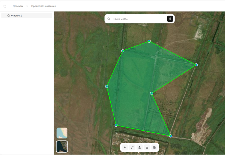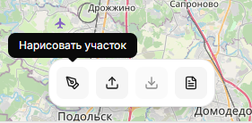 Участок можно нарисовать на карте или загрузить из файла KML. Сначала покажем рисование. Внизу по центру есть панель инструментов.